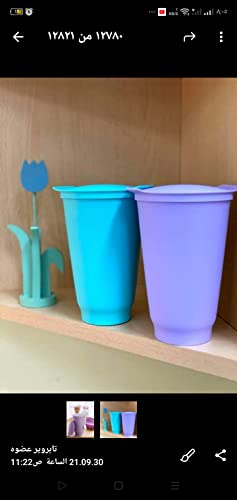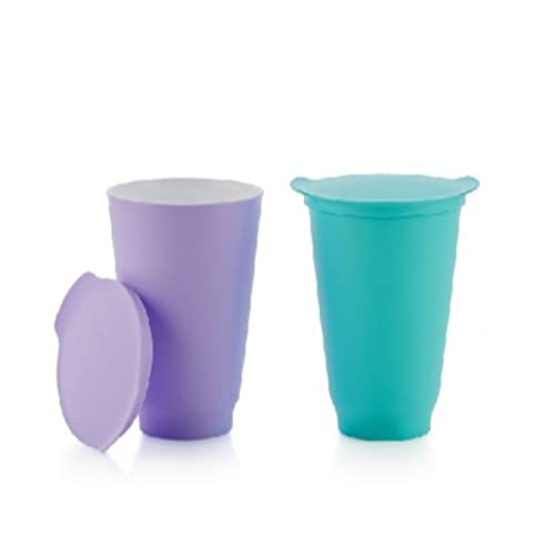 Tupperware - اكواب طويلة من اليجرا (2) 470 مل- لون موف، تركواز، زجاج