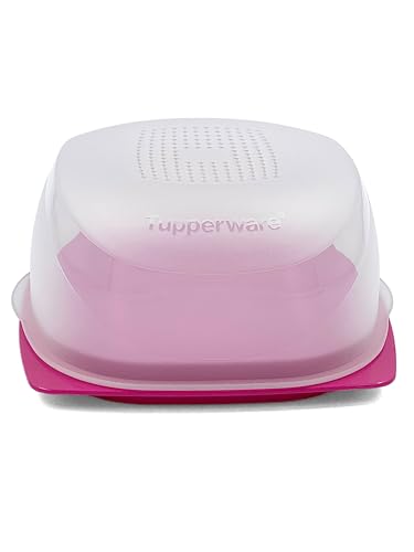 Tupperware - حافظة جبن من تبر وير تشيزمارت جونيور مثالية لحفظ الجبن أو الزبدة، قاعدة وردية بطول 16 سم.