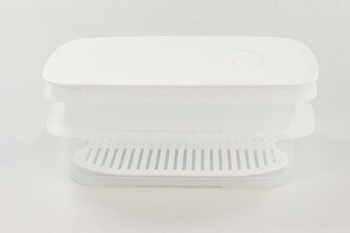 Tupperware - علبة حفظ طعام كول اند فريش 10003 من تابروير سعة 1.5 لتر + 700 مل + شبكة + غطاء - أبيض