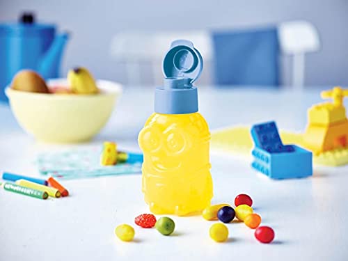 Tupperware - زجاجة مياه صديقة للبيئة بسعة 350 مل من تابروير - لون اصفر مع غطاء سهل الفتح والغلق بلون ازرق، بولي بروبلين