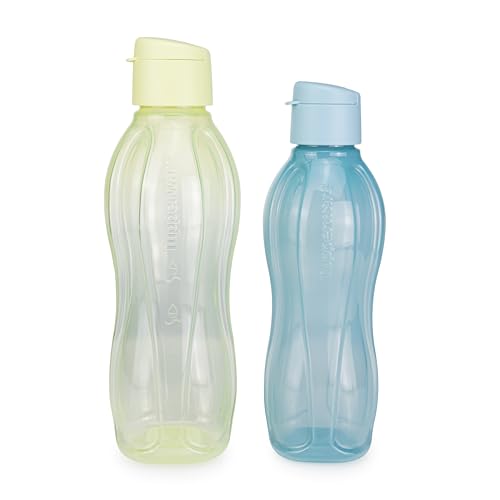 Tupperware - زجاجة شرب ايكو ايزي 750 مل أزرق فاتح + 1 لتر أخضر فاتح من تبروير، (تتضمن ملعقة بلون أخضر كيوي)