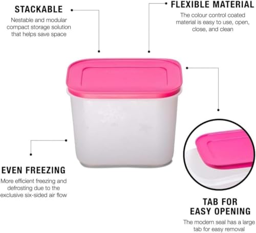 - تصميم قابل للتكديس: تم تصميم حاوية الفريزر ليتم تكديسها لتوفير المساحة. وهذا يجعل من السهل تنظيمها في الفريزر ويخلق مساحة إضافية.
