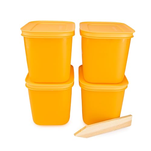 Tupperware - علب فريزر ايس كريستال لتخزين الطعام في الثلاجة والفريزر مع ملعقة سباتولا خشب من تابروير، لون برتقالي، سعة 1.1 لتر (4 قطع)