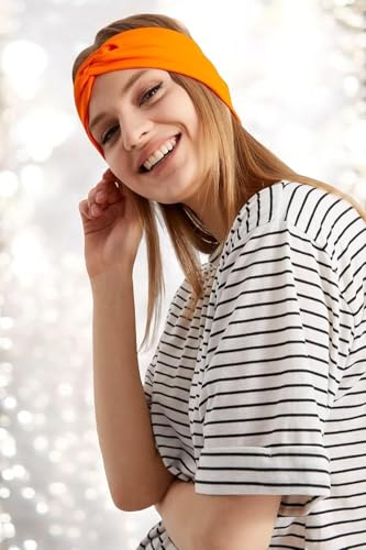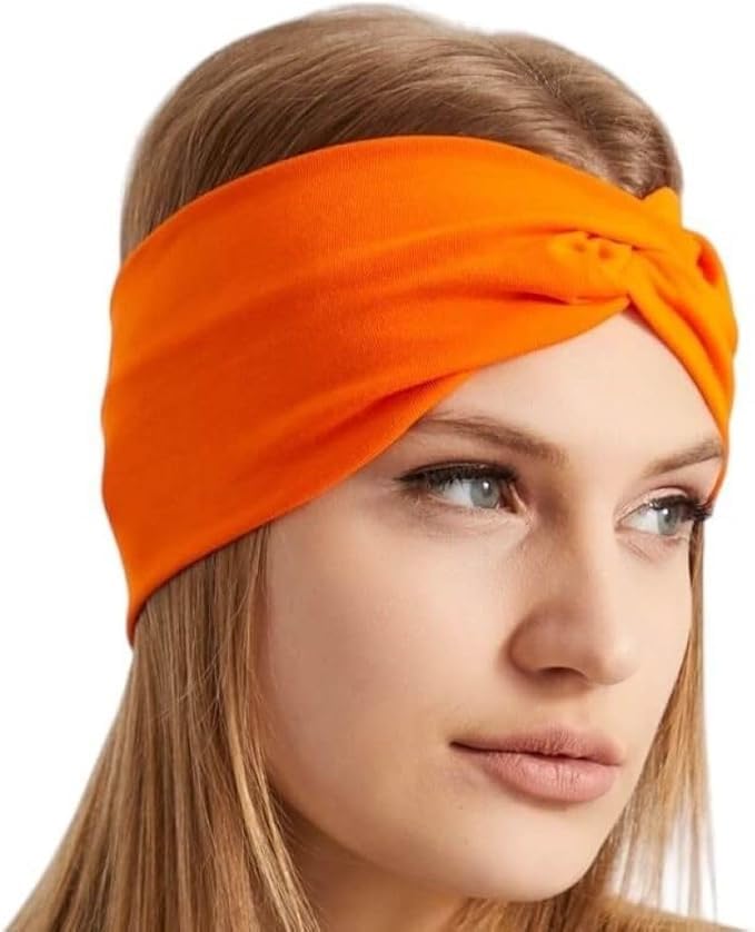 Generic - عصابات راس بتصميم عمامة عريضة معقودة قابلة للتمدد من القطن الناعم، عصابات شعر عصرية غير قابلة للانزلاق للنساء لليوغا والتمارين والجري (برتقالي)