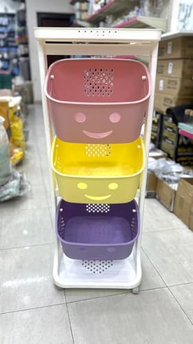 Generic - رف تخزين من تيربو بيبي سمايل، متعدد المستويات، متعدد الألوان، مصنوع من البلاستيك، متعدد الاستخدامات وقابل للتكديس، مكون من 3 رفوف