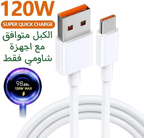 Generic - كابل تربو سريع للغاية متوافق مع شاحن تربو (لون أبيض 6 امبير (67/120 وات))