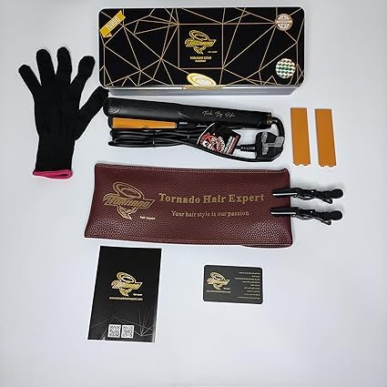 - مجموعة متكاملة من الملحقات: تتضمن القفازات الحرارية الواقية ومشبكين لتقسيم الشعر وحقيبة فاخرة للتخزين، لتجربة تصفيف متكاملة ومريحة في أي وقت.