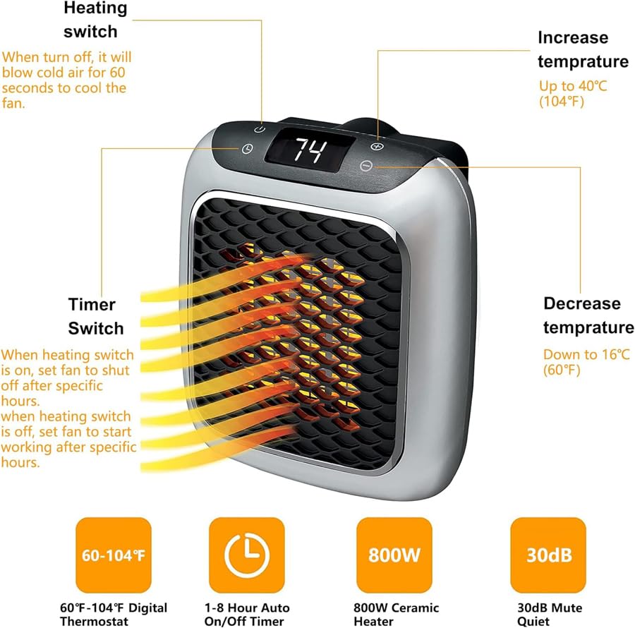 Generic - سخان تربو حراري عملي للمنزل والمكتب 800 واط، صامت مع مروحة، تسخين بالاشعة تحت الحمراء، قابس اوروبي (قطعة واحدة)