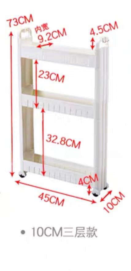- أربع عجلات متصلة بقاعدة الرف تجعل من السهل سحب وإخراج المساحات الضيقة.