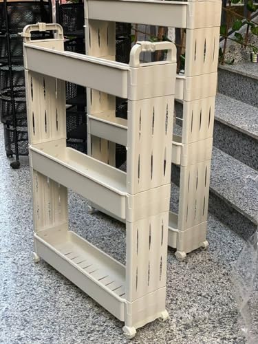 China - منظم تربو مكون من 3 رفوف للمطبخ والحمام، مصنع من البلاستيك بون أبيض وبيج، رفوف عمودية موفرة للمساحة لتنظيم وتخزين مستلزمات المطبخ والحمام، قابلة للنقل بعجلات