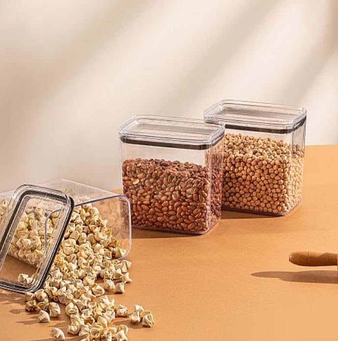 - حاوية تخزين اكريليك تركي سعة 2100 مل للبقوليات والتوابل والنودلز شفافة مع حشية سيليكون لاغلاق الهواء والسوائل