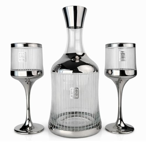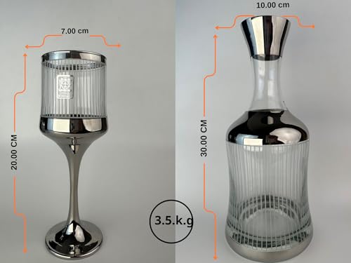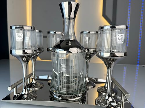Generic - طقم أكواب نيش تركي أريا فضي بحفر ليزر – 6 أكواب مع قارورة