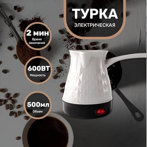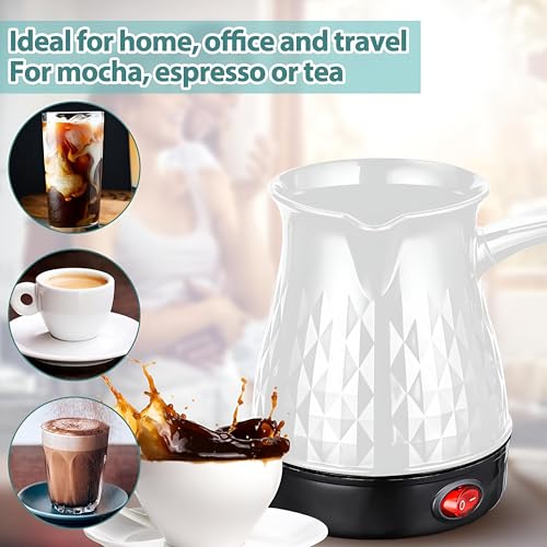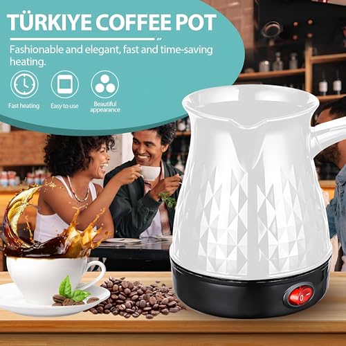 Generic - ماكينة تحضير القهوة التركية بسعة 500 مل، صانعة القهوة الكهربائية من الفولاذ مقاوم للصدأ بقدرة 600 وات للاستخدام المنزلي للقهوة التركية واليونانية التقليدية مزودة بوظيفة الغلاية الكهربائية، لون أبيض