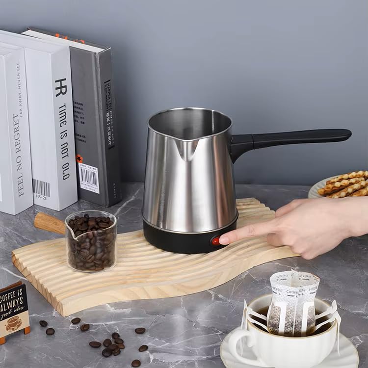 Generic - ماكينة تحضير القهوة الكهربائية التركية من الستانلس ستيل بسعة متوسطة ومقبض قابل للفصل للاستخدام المنزلي
