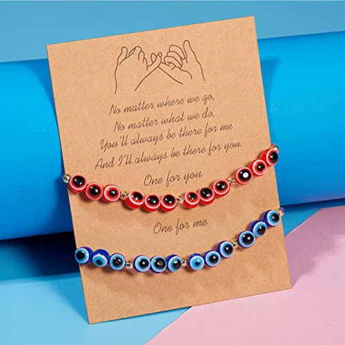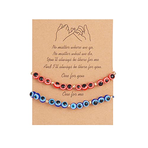 NORLSO - مجموعة اساور العين التركية بتصميم عين الحسد باللونين الابيض والازرق والازواج للنساء والفتيات المراهقات والخرز الكريستالي الملون
