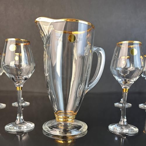 Generic - طقم شربات تركي مزخرف بماء الذهب – 7 قطع – كاسات مع دورق تقديم