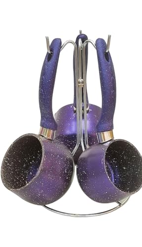 Generic - طقم كنك قهوة جرانيت تركي 3 قطع ، مزود بحامل، لون بنفسجي