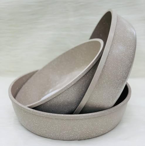 Generic - طقم صواني فرن جرانيت تركي 3 قطع كبيرة مقاوم للالتصاق والخدش – مقاسات 28/30/32 سم – خامة تقيلة بحافة عالية (بيج)