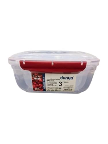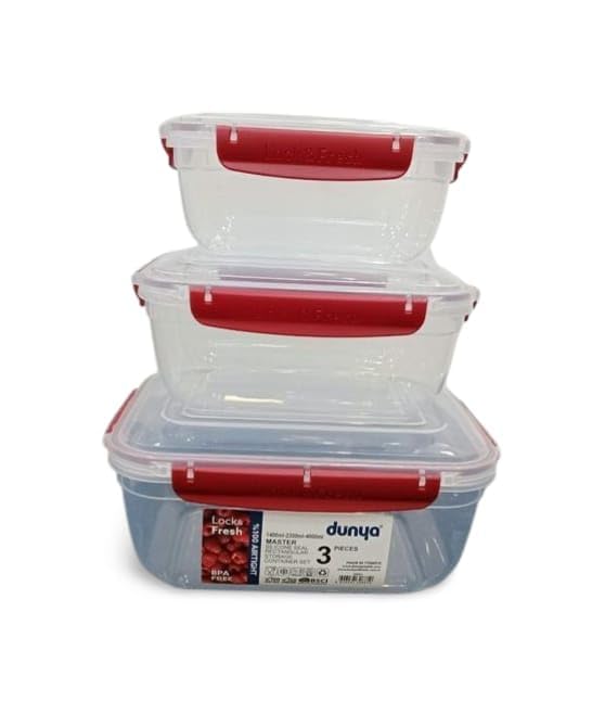 - علب ثلاجة مستطيلة الشكل مصنوعة من البلاستيك الشفاف والأحمر الخالي من البيسفينول أ مع غطاء محكم الإغلاق من 3 قطع صناعة في تركيا