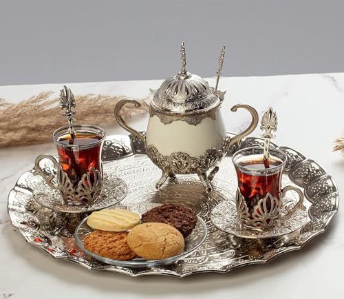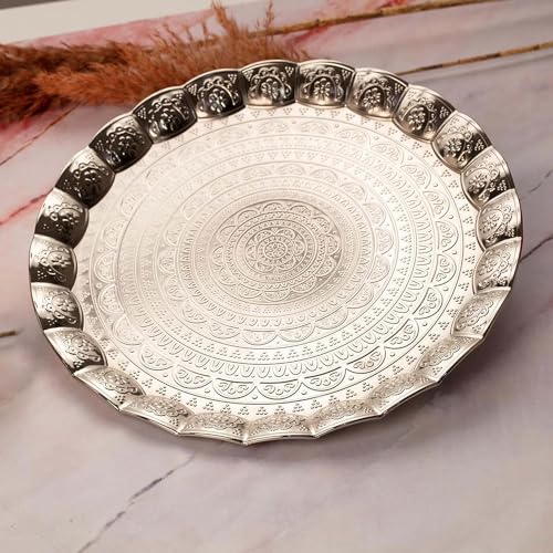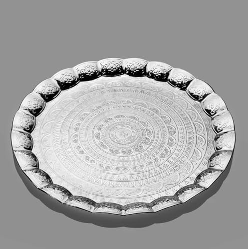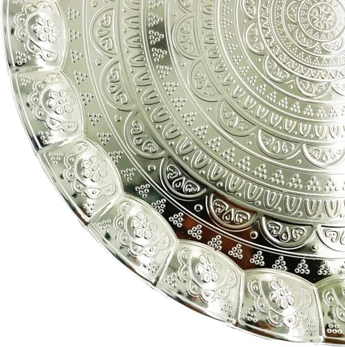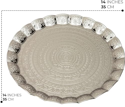 Generic - صينية تركي دائريه فضي مزخرفه ، تقديم القهوة والشاي 14 (بوصة) ديكور طاولة المنزل، مستدير