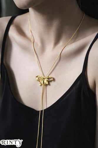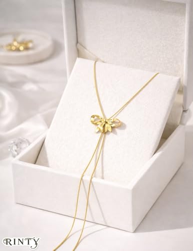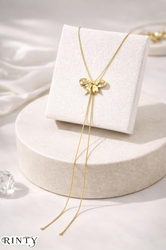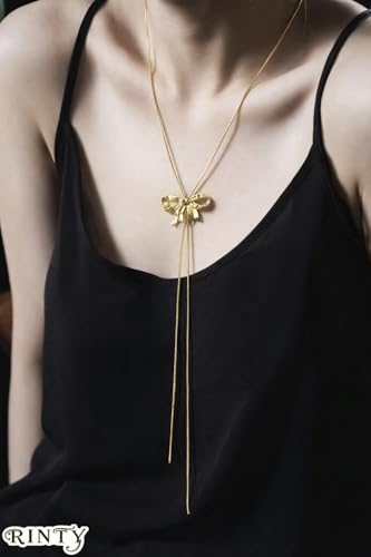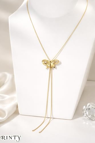 Generic - سلسلة حريمى من ستيل تركى بتصميم فيونكة ذهبية،سلسلة طويلة