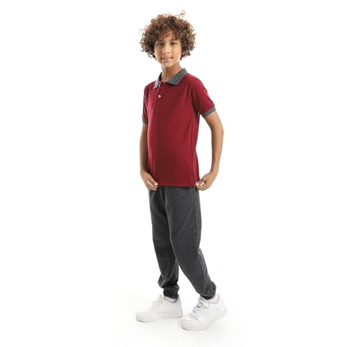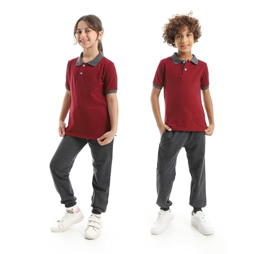 Red Circle - طقم بنطلون بيكيه بياقة مطوية لاسفل للبنات والاولاد - نبيتي ورمادي داكن للاطفال