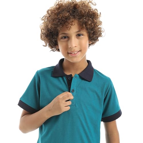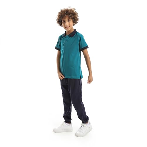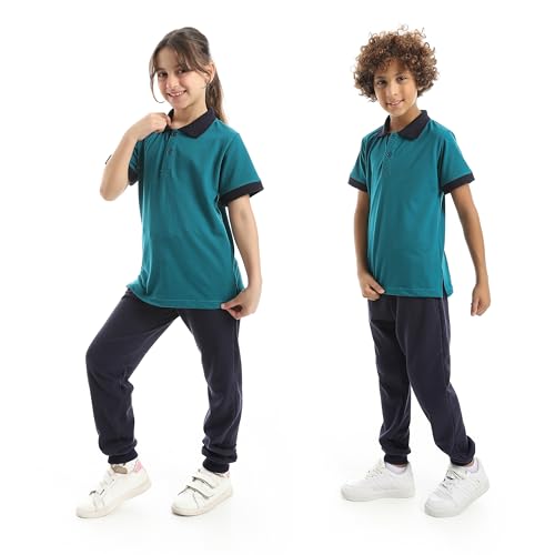 Red Circle - طقم بنطلون بيكيه بياقة مطوية لاسفل للبنات والاولاد - ازرق مخضر وكحلي داكن للاطفال
