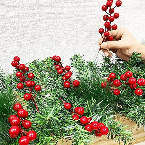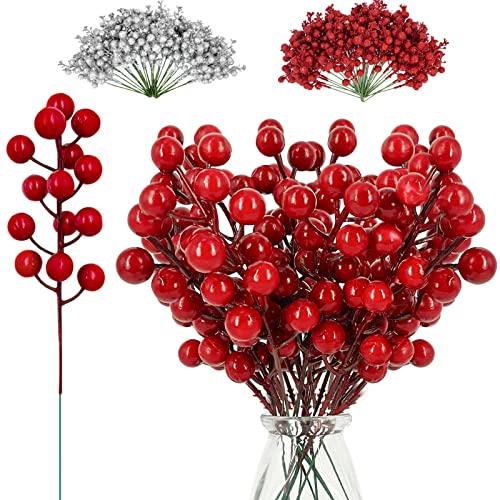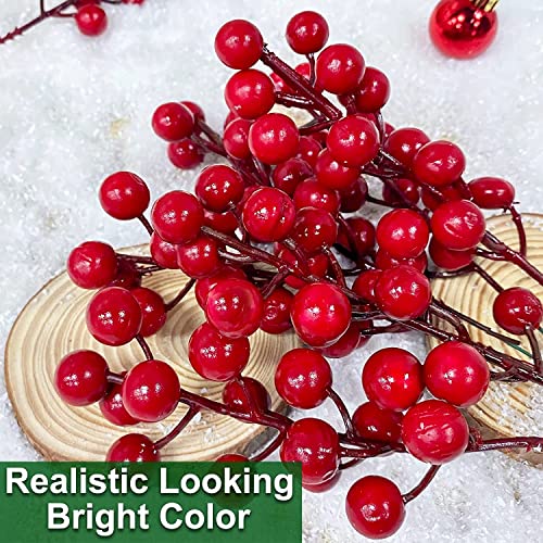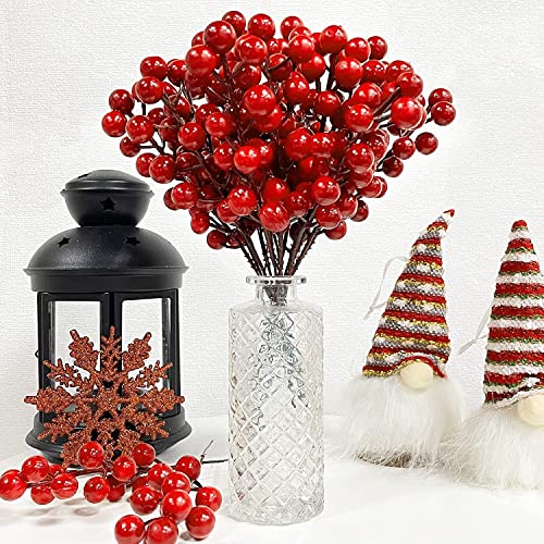 TURNMEON - تورنميون 25 قطعة زينة للكريسماس من التوت الاصطناعي 8.3 انش اغصان شجرة الكريسماس لتزيين المزهرية ديكور منزلي داخلي وخارجي احمر