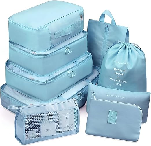 Generic - مجموعة شنط تخزين للسفر، تستخدم لتنظيم الملابس والأمتعة، مصنوعة من قماش اوكسفورد الشبكي المقاوم للماء، 6 قطع، لون تركواز