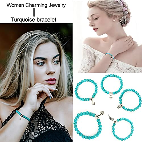 generic - سوار تركواز للنساء، سوار خرز قابل للتمدد من حجر الكريستال العلاجي على شكل سلحفاة، مجوهرات تركواز