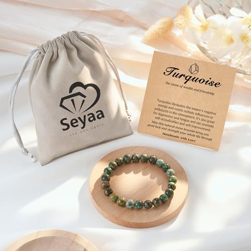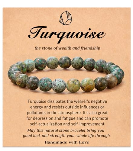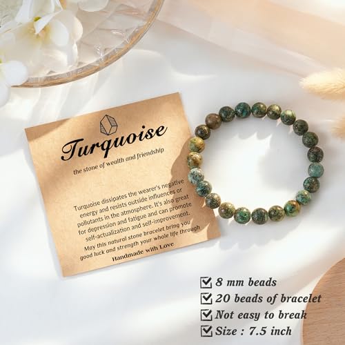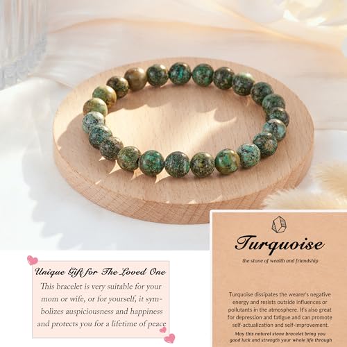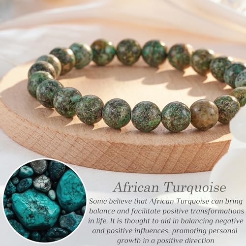 generic - مجوهرات تركواز للنساء، اساور خرز دائرية قابلة للتمدد من حجر الكريستال العلاجي للنساء والرجال، هدايا روحية تركواز افريقي