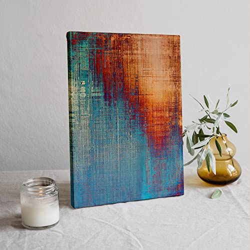 Tizzer - مطبوعات فنية جدارية عصرية تجريدية من القماش باللون الفيروزي والبرتقالي، لوحات فنية بسيطة بلون ازرق مخضر نورديك مقاس 11 × 14 انش للديكور الفني للمكتب والصالون والشرفة والحمام وغرفة النوم وغرفة المعيشة
