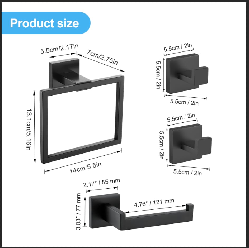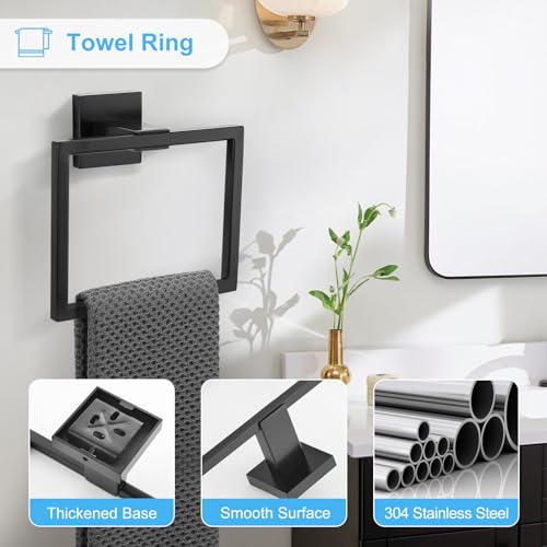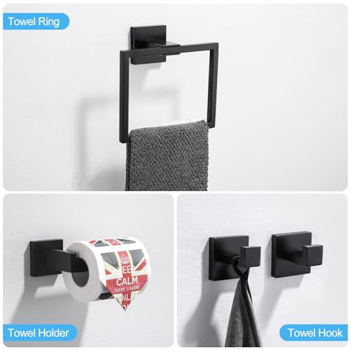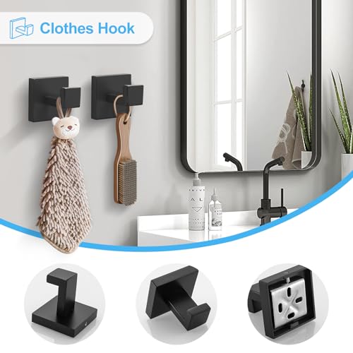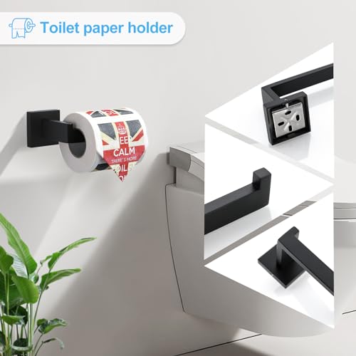 TURS - خطافات لحمل الروب من الفولاذ المقاوم للصدأ 304 من تورز، حامل ورق المرحاض، قضيب فوطة مثبت على الحائط، مجموعة ملحقات الحمام من 4 قطع (أسود)