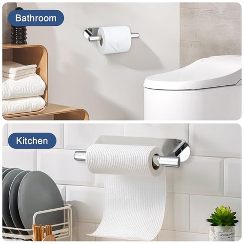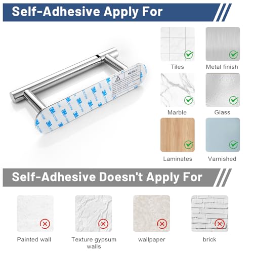 TURS - تورز حامل مناديل تواليت ذاتي اللصق، حامل مناديل تواليت دوار مزدوج الدعامة، مصنوع من الستانلس ستيل والكروم، حامل ورق للحمام بدون ثقب
