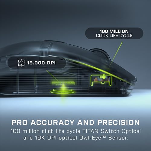 - مستشعر بصري عين البومة من روكات - استمتع بتجربة تتبع سلسة ودقيقة بفضل المستشعر البصري الرائد عالميًا بدقة 19K نقطة لكل بوصة.