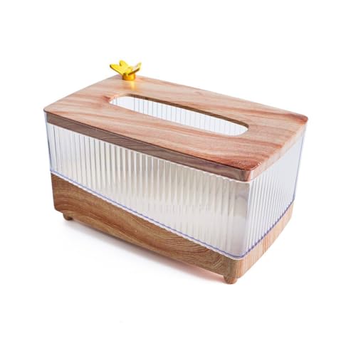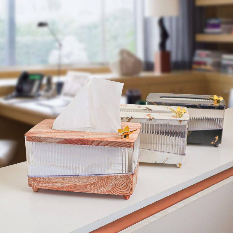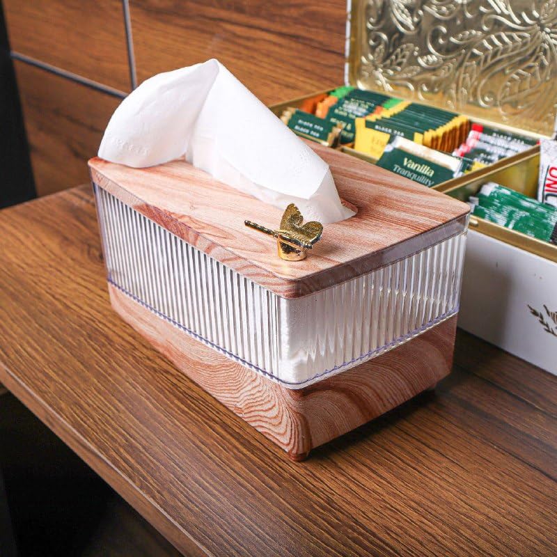 Generic - علبة مناديل توتي الخشبية بتصميم أكريليك شفاف بلمسة الفراشة الذهبية سعة 500 منديل bk