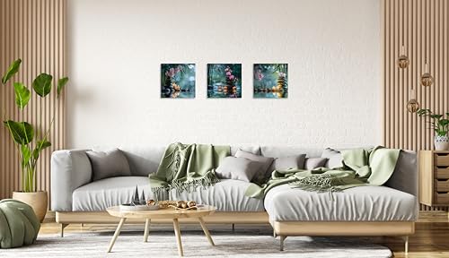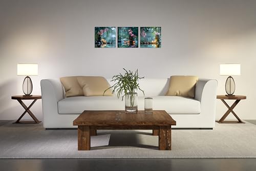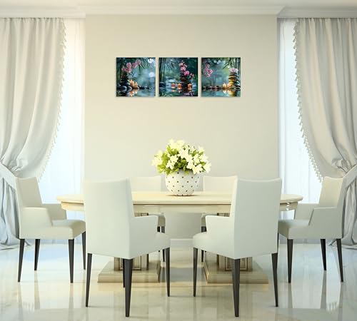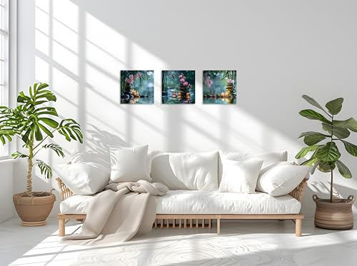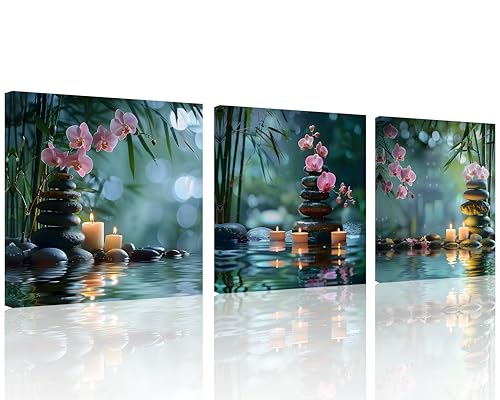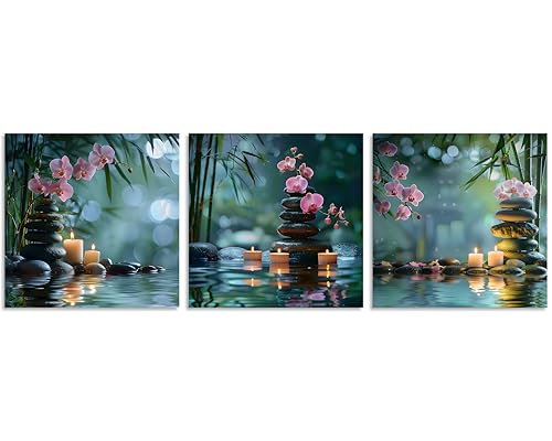 TutuBeer - لوحة فنية جدارية قماش زين 3 لوحات فنية على شكل شمعة من البامبو الأخضر بتصميم زهرة الأوركيد في الماء، لوحة فنية جدارية من قماش زين مثالية لتزيين الجدران في المنزل جاهزة للتعليق من توتوبير