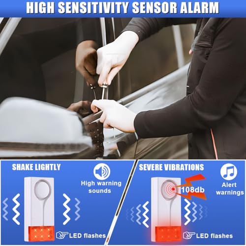 - 【منبه اهتزاز مضاد للسرقة للسيارة】: يمكن لمنبه السيارة أن يصدر صوت تنبيه يصل إلى 108 ديسيبل، ويحذر اللصوص المحتملين بفعالية. إنه حساس للغاية ويقلل من الإنذارات الزائفة، ويخيف اللصوص بشكل فعال بأصوات عالية.