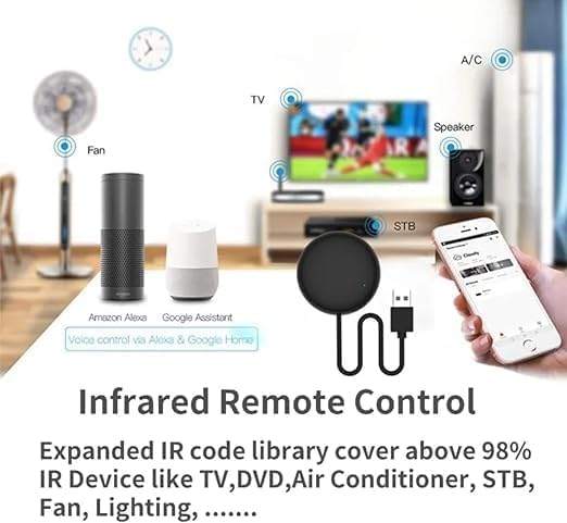 Generic - جهاز تحكم عن بعد واي فاي يعمل بالاشعة تحت الحمراء لتكييف الهواء والتلفزيون مع اليكسا من تويا مع جوجل هوم