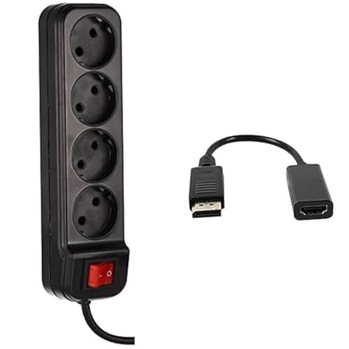 Generic - حزمة أساسية للتلفزيون (شريط طاقة 10 امبير أسود + وصلات منفذ عرض مطلي بالذهب إلى كابل HDMI (محول))
