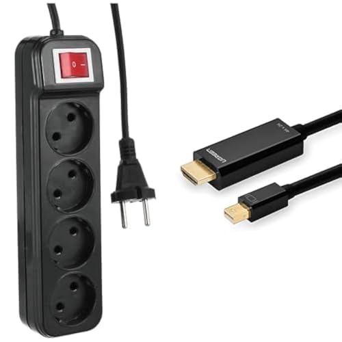 Generic - حزمة أساسية للتلفزيون (وصلة مشترك كهرباء زيرو z20 4 مقابس مع زر تشغيل - أسود، 1.5 متر + كابل ميني دي بي ذكر الى HDMI 4 كيه 1.5 متر - أسود (20848))