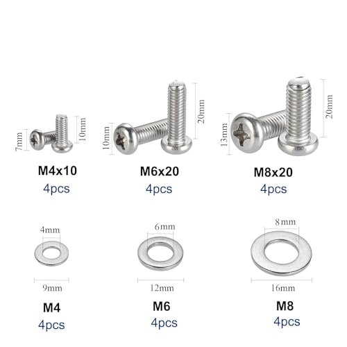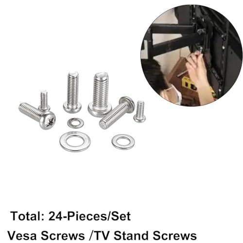 Generic - مجموعة أدوات تثبيت التلفزيون، براغي تثبيت تلفزيون فيسا لتثبيت التلفزيون والشاشة، مسامير وحلقات ربط ستانلس ستيل، 24 قطعة، M4 M6 M8