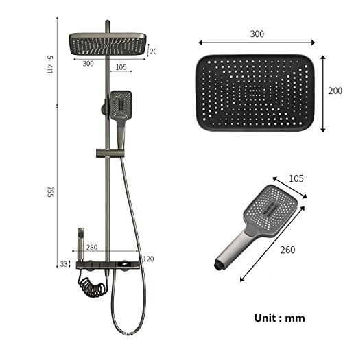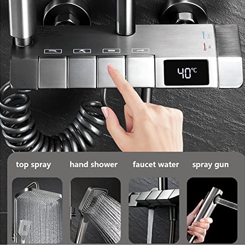 TVBNHU - مجموعة صنبور دش بمفتاح بيانو ونظام دش رقمي من 4 وظائف، صنبور حوض استحمام نحاسي مع 3 أوضاع، دش يدوي وبخاخ شطاف من تي في بي ان اتش يو