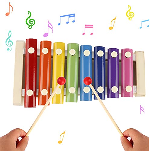 Tvoip - لعبة اكسيلوفون خشبية من تيفويب، آلات موسيقية إبداعية خشبية 8 نوتات، اكسيلوفون للاطفال، تنمية المهارات الموسيقية للأطفال