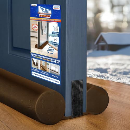 Twin Draft Guard - واقي تيار هواء مزدوج 60220-dna اكستريم للابواب بلون بني حاصل على براءة اختراع وعلامة تجارية، مفرد