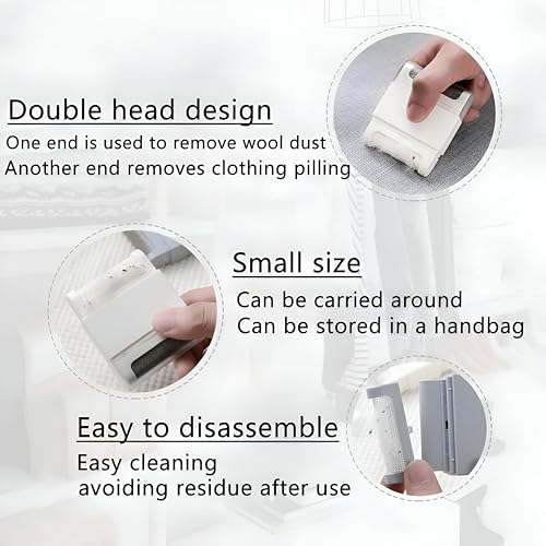 Generic - مزيل الوبر ذو الرأسين - مزيل وبر يدوي صغير الحجم برأسين لإزالة الألياف بسهولة من السترات والفراء، محمول وخفيف الوزن، لعمليات الغسيل السريعة، أبيض