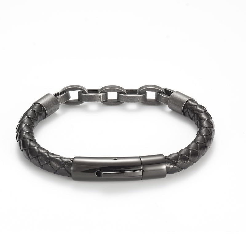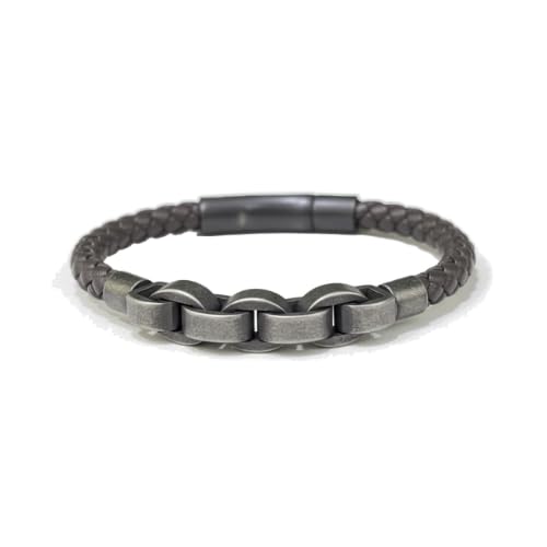 Generic - سوار رجالي أنيق من الجلد والفولاذ المقاوم للصدأ، تصميم مجدول مزدوج بلمسة فاخرة، مشبك مغناطيسي قوي، من TWINKLYN – مناسب للإطلالات اليومية والهدايا.