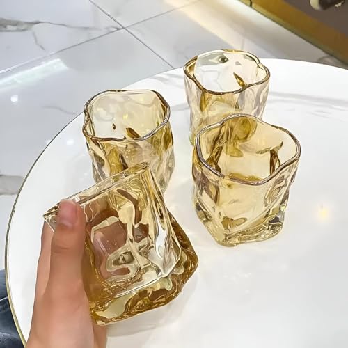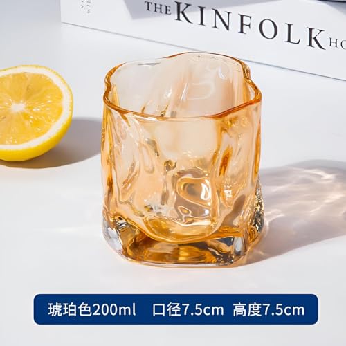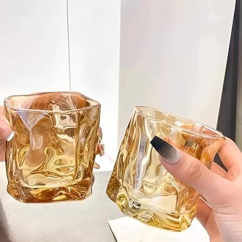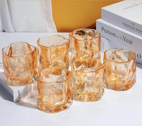 Generic - ادوات شرب زجاجية ملتوية - 6 قطع - اكواب زجاجية مزخرفة بلون كهرماني - بالون العسل - للمشروبات الساخنة والويسكي والكوكتيل، انيقة ومتعددة الاستخدامات للاستخدام اليومي