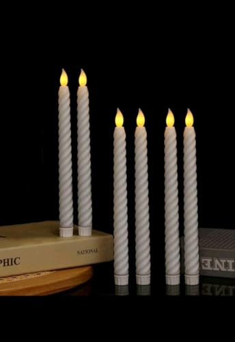 Generic - شموع بيضاء طويلة مضيئة بتصميم ملتوي، مجموعة من ٦ قطع، مع إضاءة LED