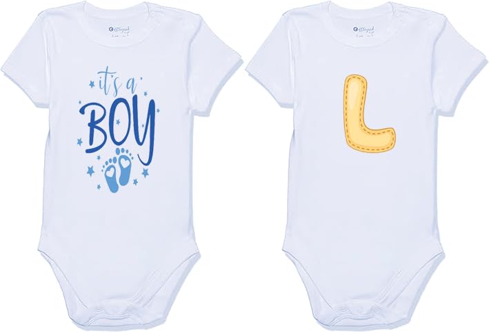 Generic - سالوبيت بكباسين قطن 100% بأشكال مميزة وعبارة (IT'S A BOY) و (G) للأطفال البيبي - قطعتين